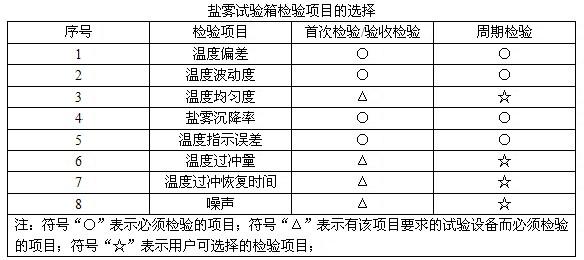 鹽霧試驗(yàn)箱首次檢驗(yàn)/驗(yàn)收檢驗(yàn)和周期檢驗(yàn)時(shí),若無其他規(guī)定,按下表選擇檢驗(yàn)項(xiàng)目。