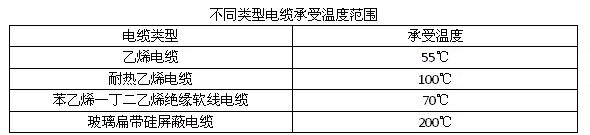 高低溫試驗箱針對需要外接電纜的試樣電纜一定要使用經受得住測試條件的電纜,下表是各類電纜和其承受溫度的表格。